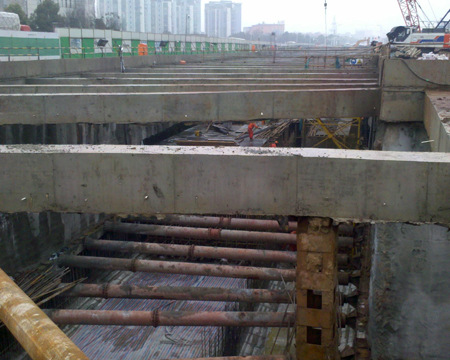 項目位于建康路和中華路交界處東北角,南京外運大廈南側。工程主樓為3幢15~16層,裙樓4~5層,整體設有4層地下室,基坑南北長170m,東西寬140m,基坑圍長608m,開挖深度20m。采用鉆孔灌注樁+4層砼支撐的支護形式,坑外施工三軸深層攪拌樁作為止水帷,基坑支護結構的安全等級為"一級"。南京市優秀工程測繪一等獎,江蘇省城鄉建設系統優秀勘察設計二等獎,江蘇省第十二屆優秀工程勘察二等獎。