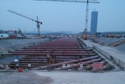 項目位于南京市新模范馬路,監測范圍K3+047~K3+800.036、寬度約30米。起自玄武湖隧道西出口引道終點西側約300m處,隧道下穿南瑞路-司背后、三牌樓大街、工業大學虹橋校區門口。基坑開挖深度12.0m,采用鉆孔灌注樁、SMW工法樁、CMW工法樁、多層鋼、砼支撐的支護形式,坑外施工三軸深層攪拌樁作為止水帷幕。支護結構的安全等級為"一級"。南京市優秀勘察設計二等獎,江蘇省第十二屆優秀勘察設計三等獎。